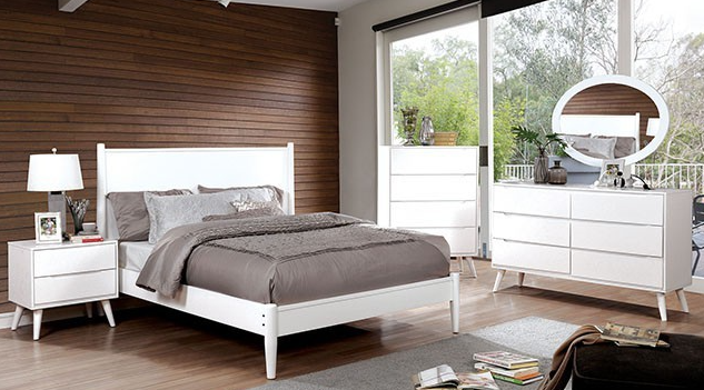 Modern lines and rustic styling are paired to create the look of the Corbin Collection. The 3D printed paper veneer’s texture is highlighted by a white finish for a realistic wood look. Subtle framing defines the profile of the queen panel headboard and footboard, further lending to the unfettered design of the collection. The bed’s construction allows for convenient packaging within one box.