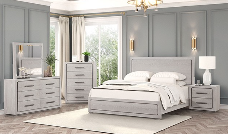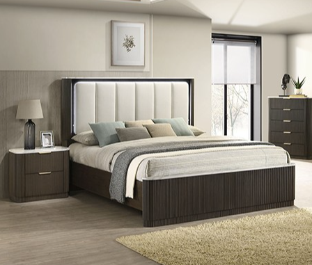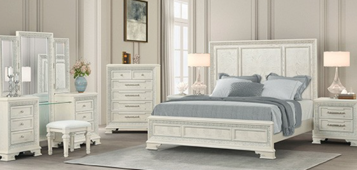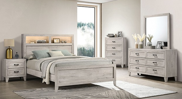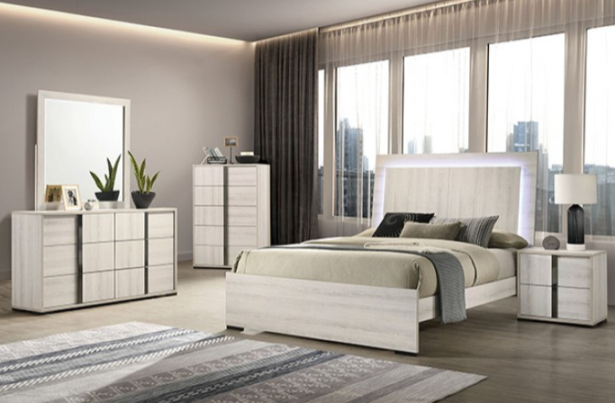 Subtle modern accenting inspires the classic design of the Florence Collection, each element pairing to create a visually appealing look for your bedroom. Reeded accenting fronts the ivory-hued padded LED back-lit queen headboard, and footboard. The antique white finish of the collection lends a refreshing hue to your room’s décor.
