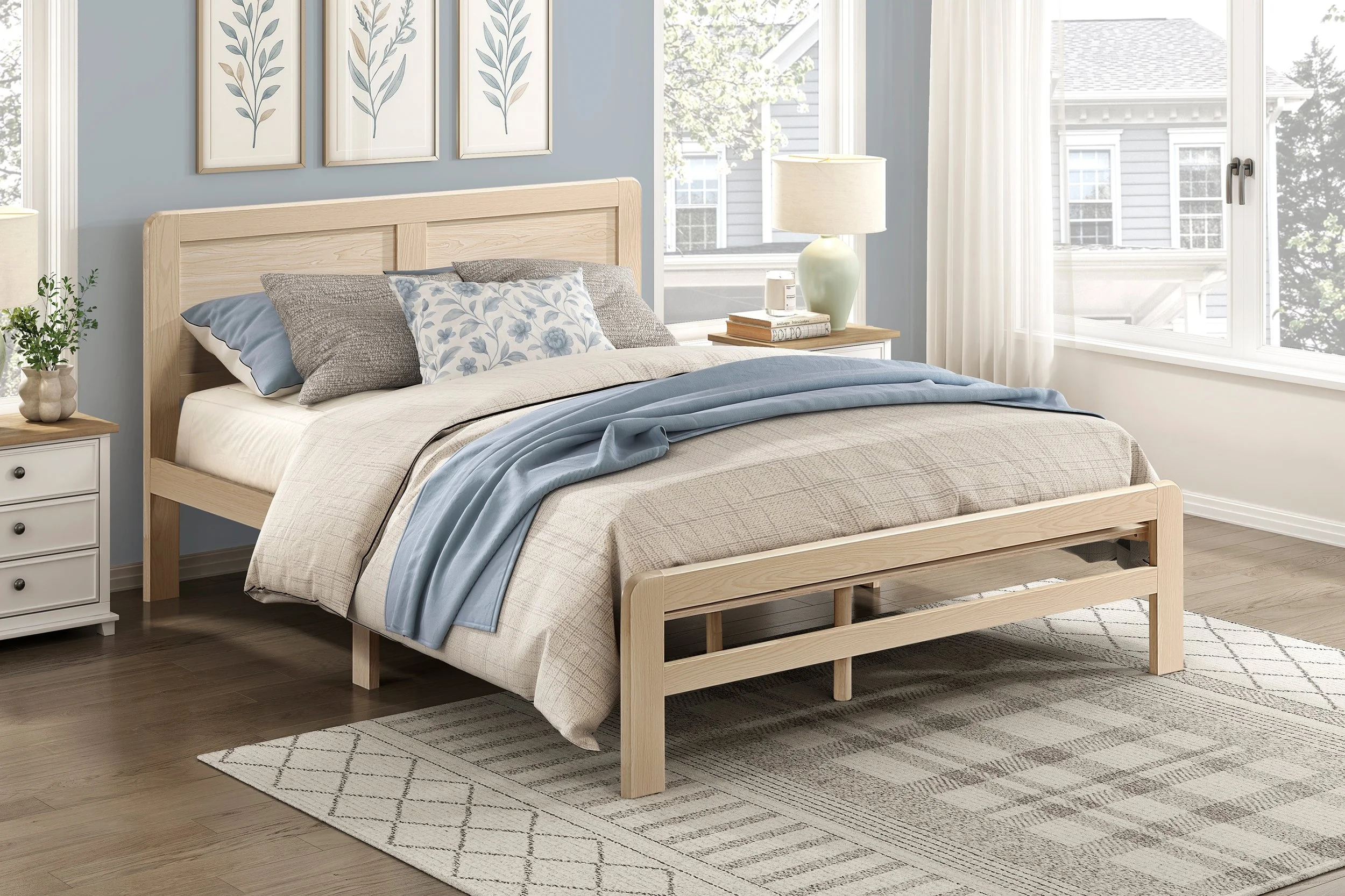 Farmhouse, Natural Oak, Rubberwood, Engineered Wood, Solid Wood, Pecan Veneer, Plank Headboard, Foundation Required