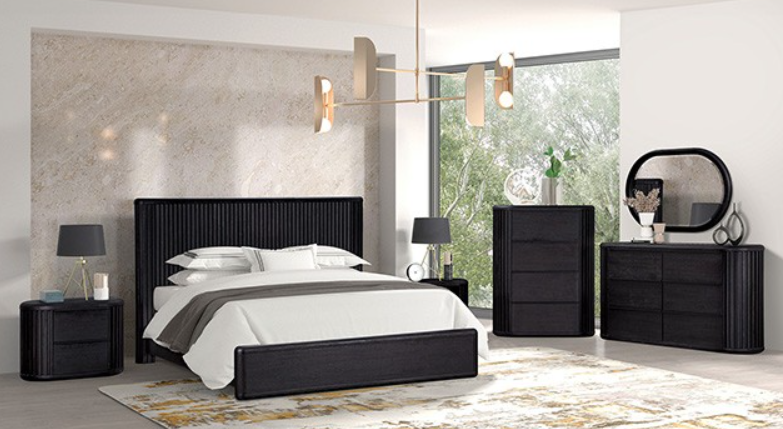 Modern Contemporary, Black, Solid Acacia, Acacia Veneer, Engineered Wood, Fluted Panels, Rounded Edges