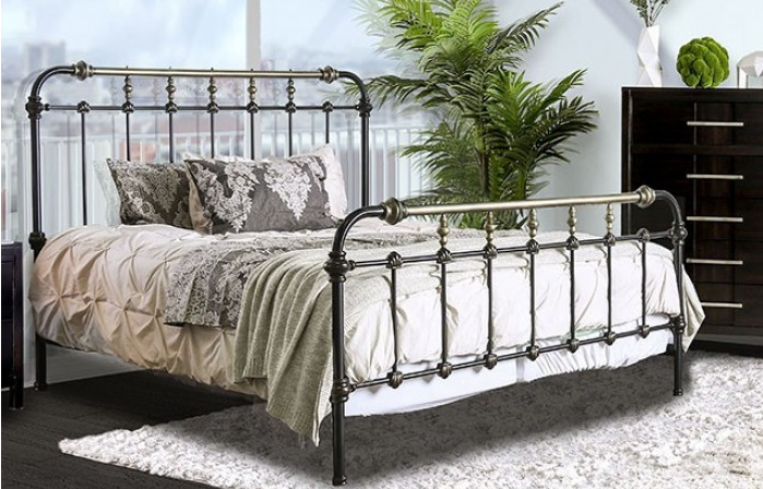 With a design that speaks to your love of vintage styling, the Larkspur Collection helps you to achieve the timeless aesthetic you wish to present in your bedroom. Classic elements, such as ball accents on the vertical rods of the headboard and footboard, and the queen bed’s curved profile, are finished in an antique bronze serving as an effective statement on the traditional look. The Larkspur Collection is also available in Eastern King, Twin and Full.