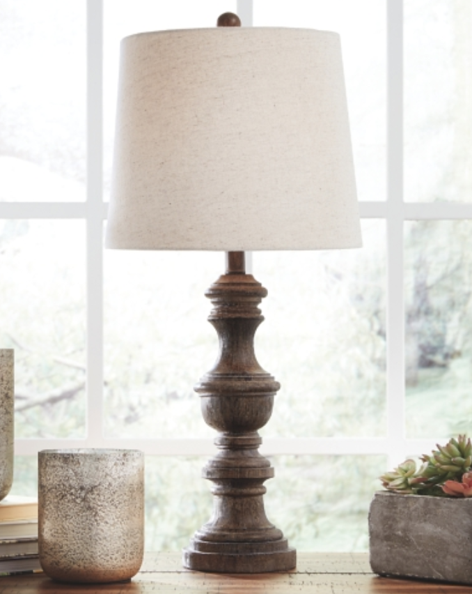 Shapely, sophisticated base is teeming with faux wood texture. Antiqued brown finish enhances the natural appeal you crave, filling your home with on-trend yet casual vibes.