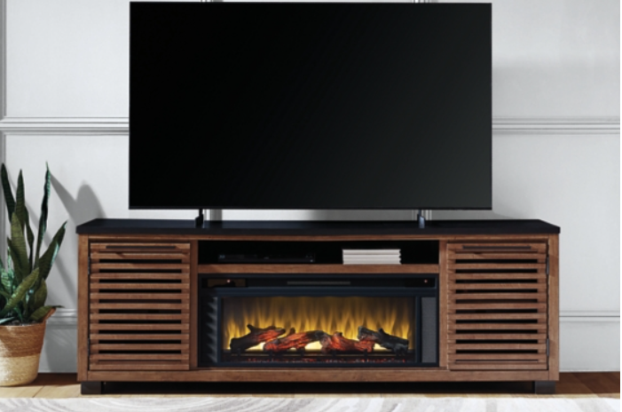 Nostalgic style, retooled for today’s trends. This TV stand with electric fireplace puts an elevated twist on mod aesthetics. Its warm brown tones reflect the mid-century vibes you love, while the angular base incorporates contemporary motifs. Integrated drawer handles round out the look in sleek style. For added ambiance, the electric fireplace brings a cozy-cool vibe to your living room