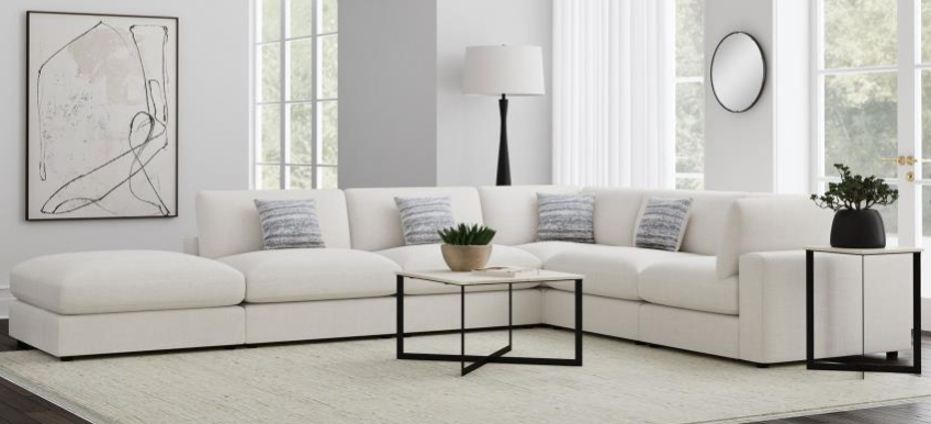 Elevate your living space with the Tinley Collection, the perfect combination of style, flexibility, and comfort. Designed for modular configurations, the versatile corner seat is equipped with adjustable back and armrests for personalized comfort and reversible cushions for easy maintenance and extended durability. The armless chair features plush cushioning and comes with matching lumbar pillow for enhanced comfort. The plush ottoman serves as a multipurpose addition to any room, perfect for use as a footrest.