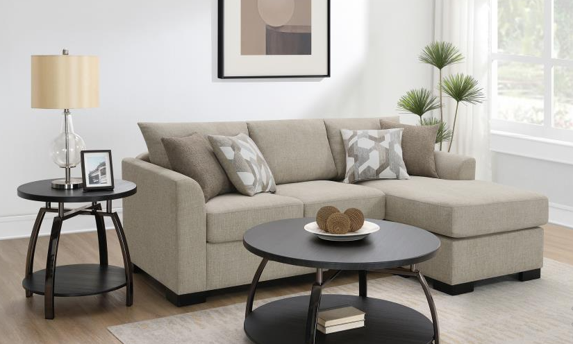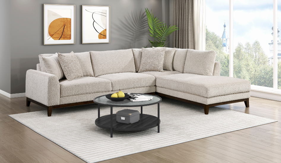 Sectional offers transitional style to complement any home. Tufted back cushions offer a classic, refined look and are fully removable for easy cleaning and maintenance. Two accent pillows offer additional style and comfort to your room.
