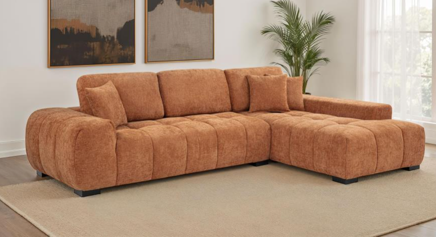 Three accent pillows, including one sequined lumbar pillow and two cylindrical bolster pillows, add extra comfort and refinement. As functional as it is glamorous, this sectional includes a hidden storage compartment inside the chaise for the perfect place to stash movies, board games, or blankets.