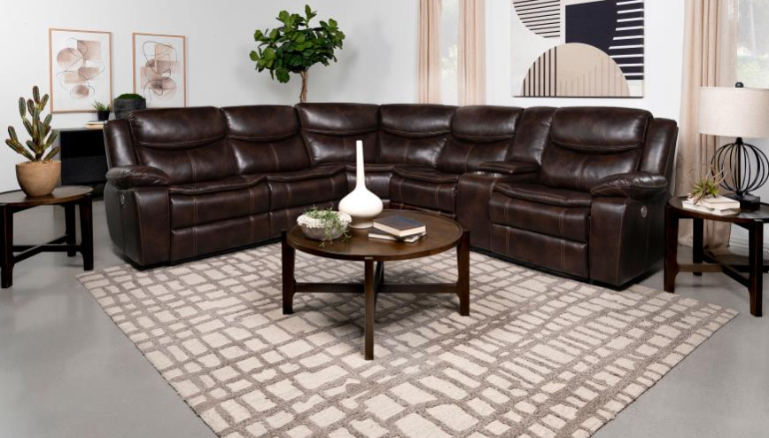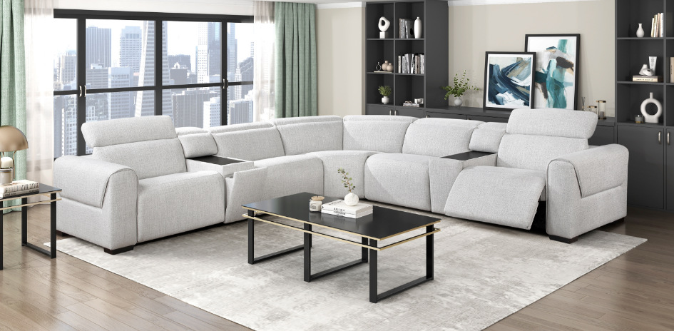 Transform your living room into the ultimate entertainment zone with our high-tech, 3-piece power reclining sectional collection. Upholstered in a sleek and durable breathable faux leather, each sectional combines luxurious comfort with a full suite of modern conveniences. Enjoy personalized relaxation with one-touch power controls and power-adjustable headrests.